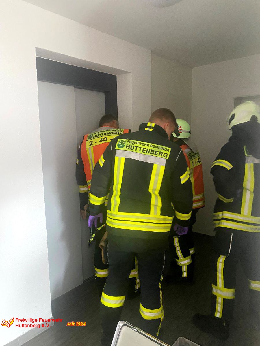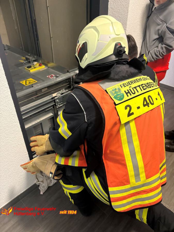 Eine Bewohnerin eines Mehrfamilienhauses ist mit dem Aufzug stecken geblieben. Da der interne Notruf nur schlecht zu verstehen war, wählte die Frau den Notruf der Feuerwehr. Beim Eintreffen der Einsatzkräfte öffnete man die Aufzugstür und stellte fest, das dieser genau in der Mitte von zwei Stockwerken stecken geblieben ist. Über ständiges Sprechen hatte man Kontakt zu der eingeschlossenen Frau. Das Verschieben der Aufzugskabine gestaltete sich als langwierig, auch als der Servicetechniker der Aufzugsfirma später eintraf. Nach über 1 Stunde konnte die Frau etwas verlegen aber unverletztbefreit werden.